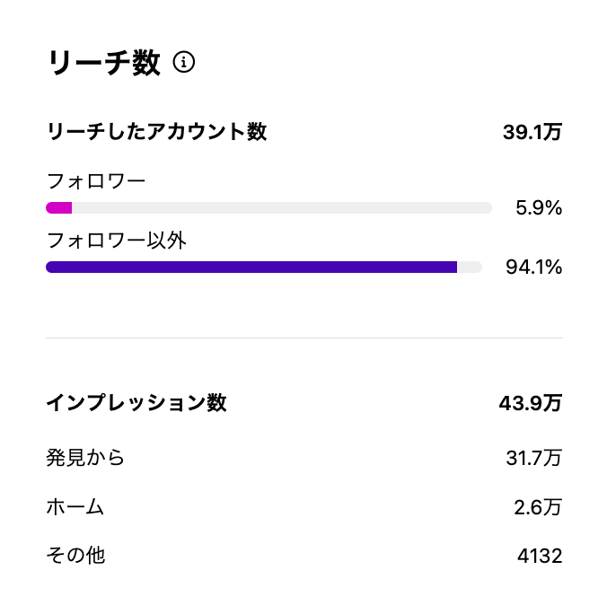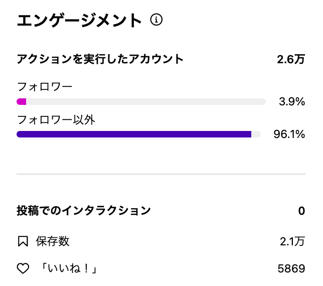 「応募(いいね・フォロー・コメント)」を通じて、投稿がフォロワーのさらに先にまで爆発的に拡散。短期間で圧倒的なリーチ数を獲得します。